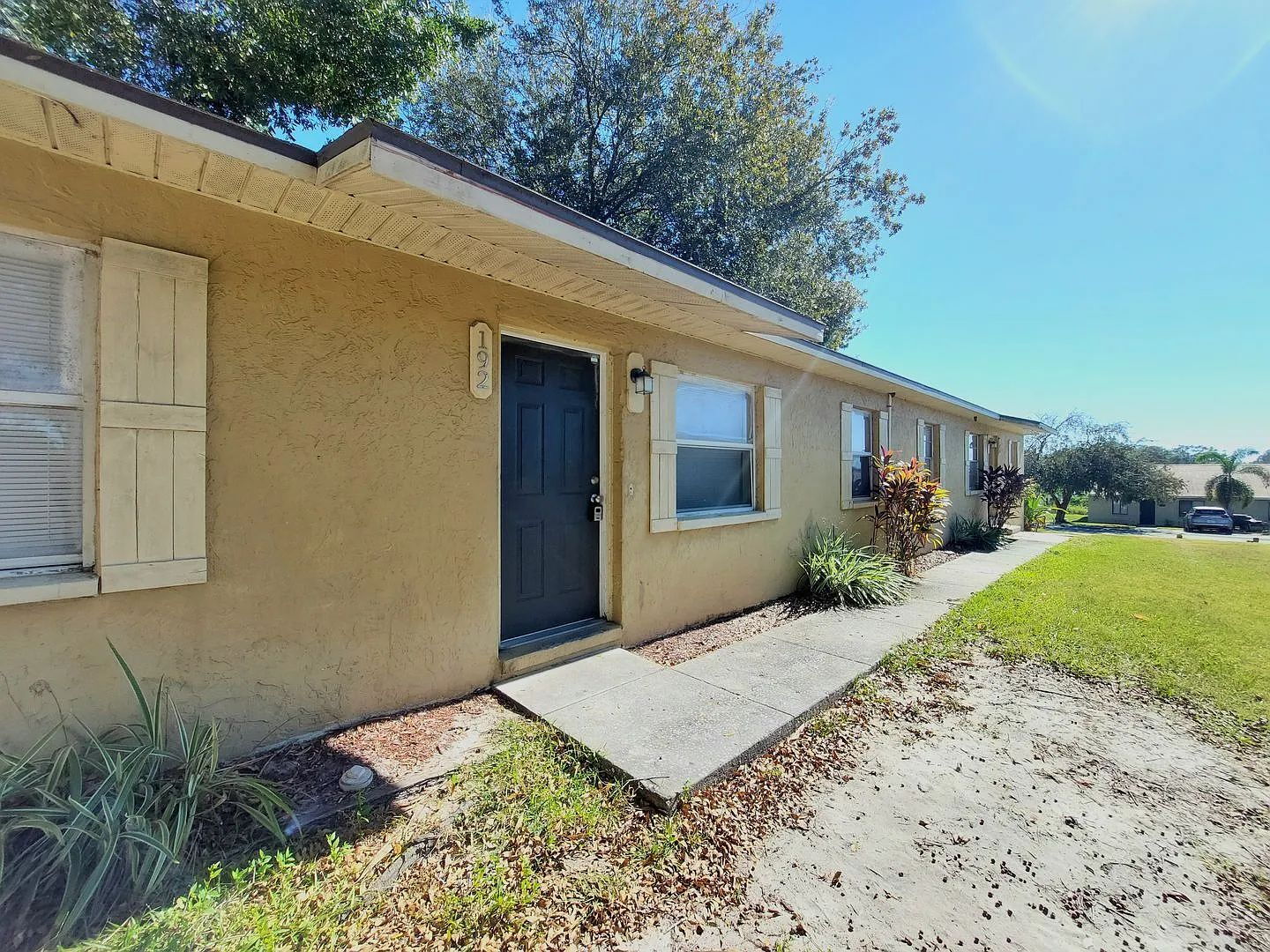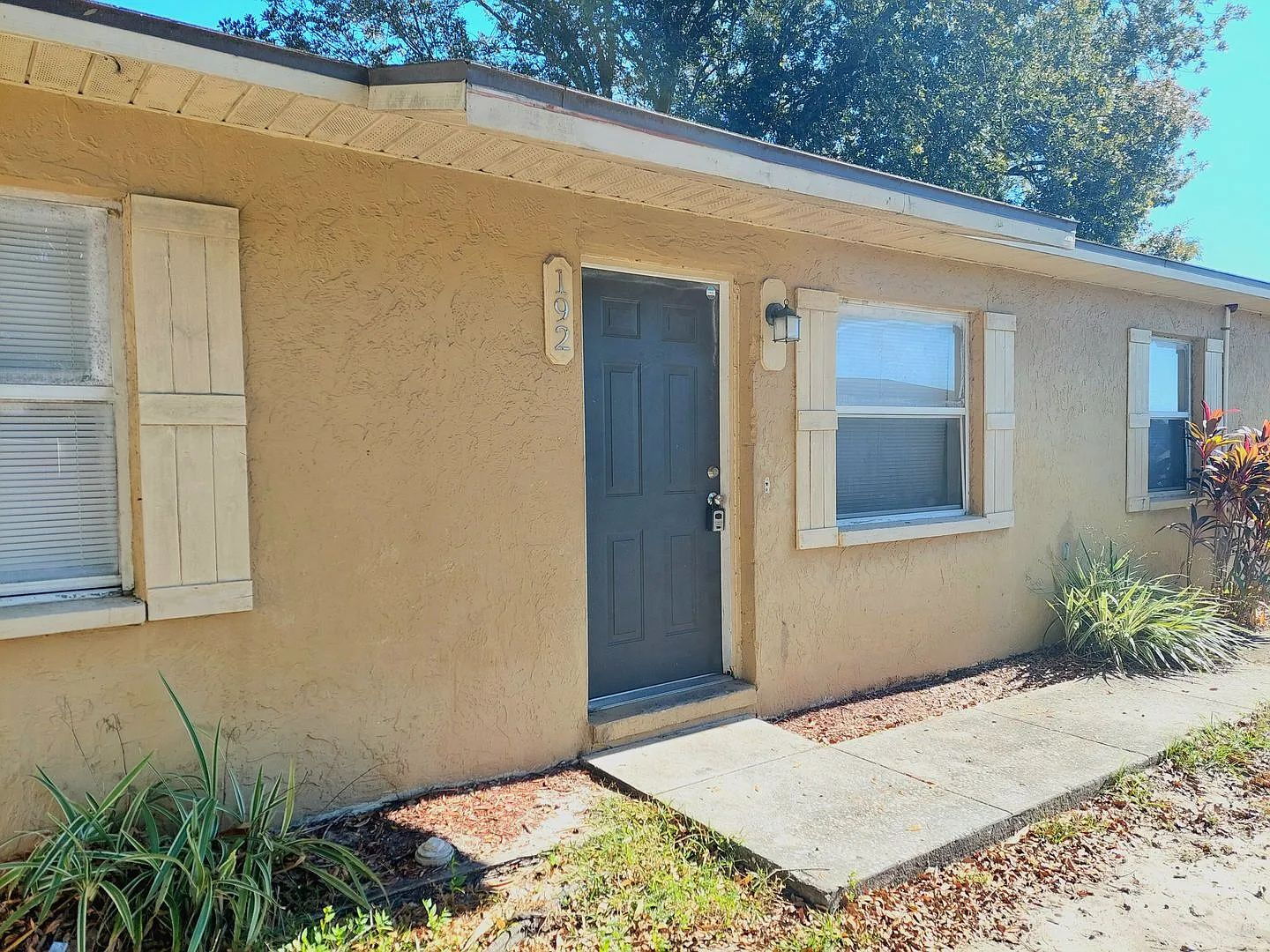 This duplex at 192 Rebecca Lane in Auburndale, Florida, features 1,128 sq ft of comfortable living space with three bedrooms and two full bathrooms. The functional layout includes a practical kitchen with washer and dryer hookups, along with tile flooring throughout for easy maintenance. The interior has been freshly painted and includes new appliances, creating a clean and updated feel.
