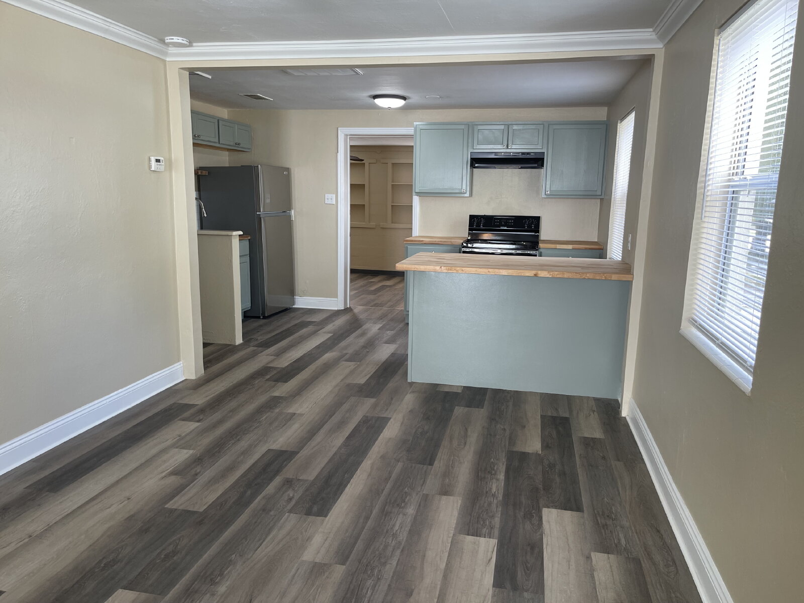 Step inside to find brand-new vinyl plank flooring, a bright, open living space, and a fully updated kitchen complete with new cabinets, butcher block countertops, and brand-new range and refrigerator. Both the interior and exterior have been freshly painted, giving this home a clean, welcoming look.
